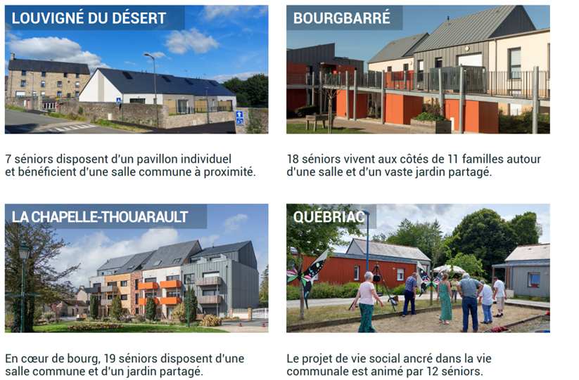 - Des logements conçus pour le maintien à domicile au sein d’habitats groupés (8 au total, soit 69 logements) ou d’habitats inclusifs (13 au total, soit 163 logements), situées à proximité des commerces, des transports en commun et des centres médicaux.