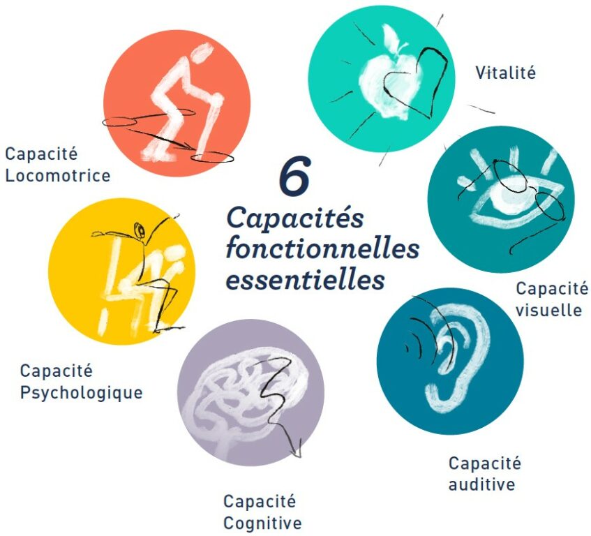 Le programme ICOPE, soutenu par le ministère de la Santé et de la Prévention, permet de détecter précocement des signes de déclin parmi les 6 fonctions essentielles :